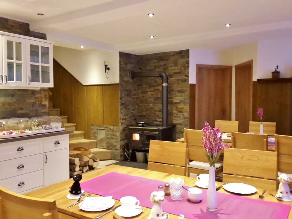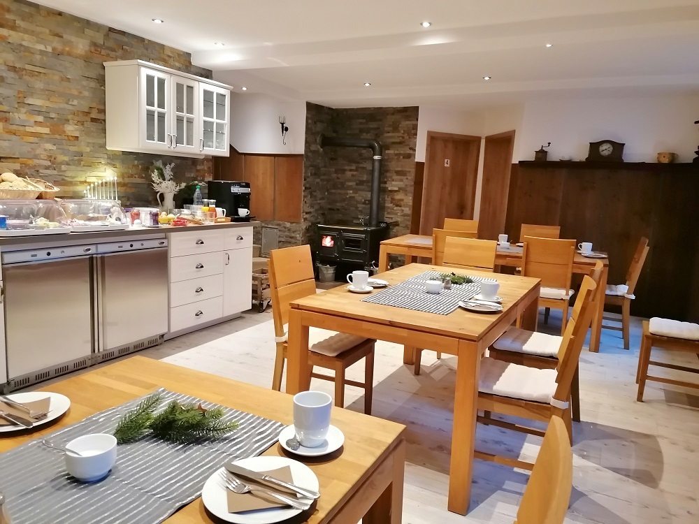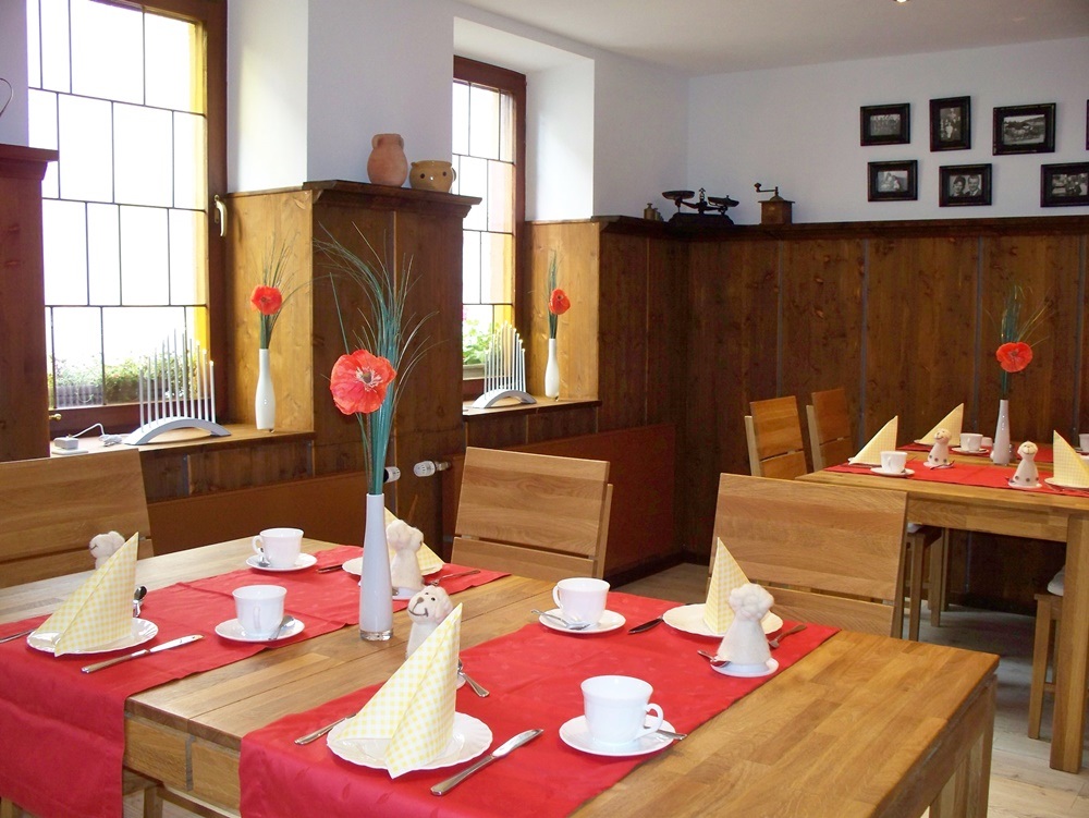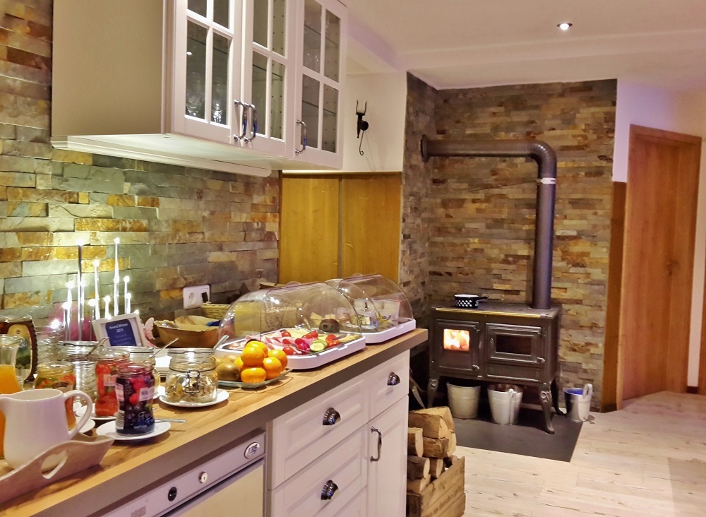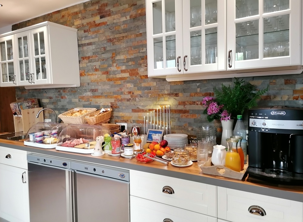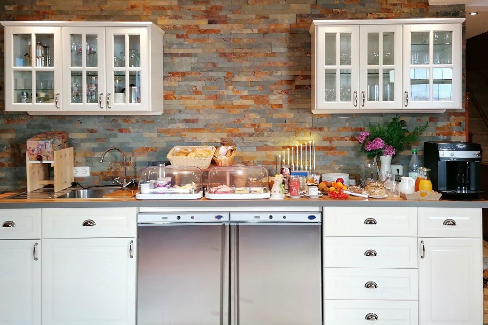 Außerdem bieten wir unseren Pensionsgästen eine gemütliche Gästeküche mit Balkon auch als Treffpunkt für gemeinsame Gespräche.